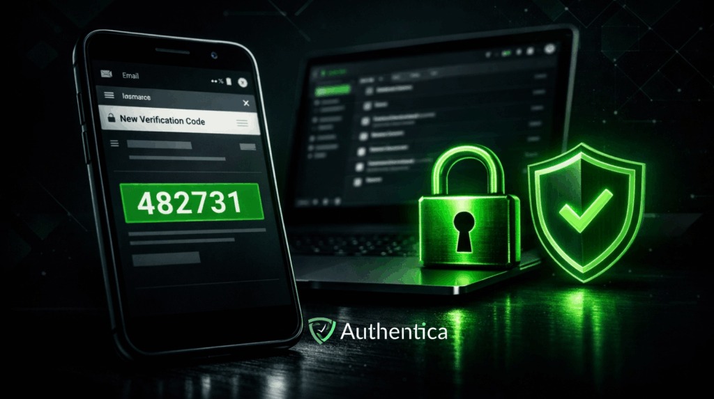 واجهة أمان رقمية تعرض رمز تحقق آمن عبر البريد الإلكتروني.